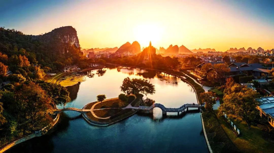 如果說漓江是自然賦予桂林的奇跡,那么"兩江四湖"便是凝聚桂林智慧的生態(tài)奇觀。兩江四湖——漓江,桃花江,榕湖,杉湖,桂湖,木龍湖構(gòu)成的環(huán)城風(fēng)景帶,營(yíng)造出"水上城市"的美感,將桂林妝點(diǎn)得更加美麗。