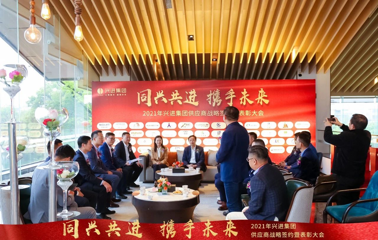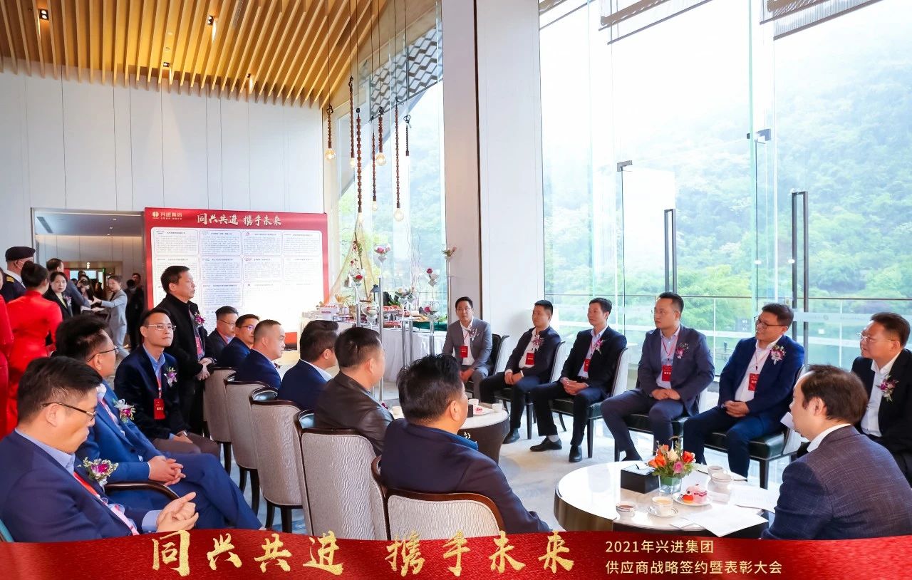 本次大會圍繞"同興共進(jìn),攜手未來"主題展開,興進(jìn)集團(tuán)董事長兼總裁羅欣先生、副總裁兼事業(yè)一部總裁王敏女士 、副總裁韋萍女士、副總裁李華先生、副總裁羅捷女士、事業(yè)二部總裁張昌平先生、事業(yè)三部總裁黃華杰先生及相關(guān)部門負(fù)責(zé)人、以及興進(jìn)集團(tuán)戰(zhàn)略合作供應(yīng)商代表、2020年度合作中履約評估優(yōu)良的供應(yīng)商代表、各大媒體代表相聚一堂,共話未來!